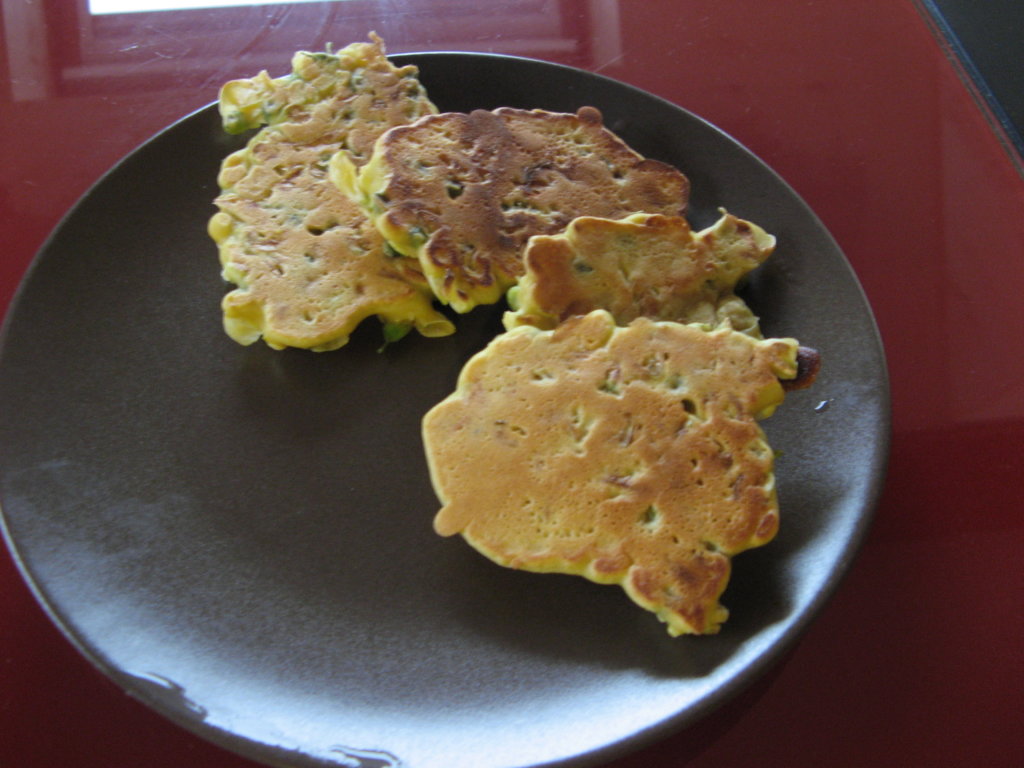 Dans un saladier mélanger la farine de riz, les oeufs, les sucres, l’eau gazeuse, l’huile et le lait. La pâte doit être assez épaisse, si on la dilue plus avec du lait on obtiendra des crêpes.