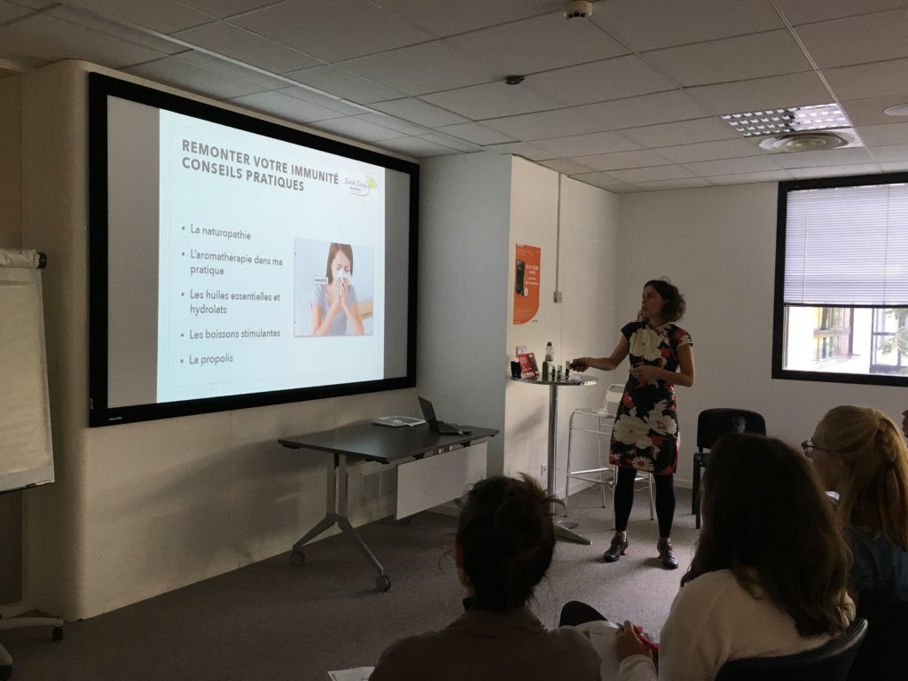 - une conférence COMMENT BIEN PRÉPARER L’AUTOMNE AVEC LA NATUROPATHIE ET L’AROMATHÉRAPIE. Ce qui me tient à coeur lors de mes présentations, c’est de pouvoir donner des conseils pratiques et non pas que théoriques. Comme des parfumeurs, il y a une séance olfactive pour associer une odeur à l’huile essentielle.