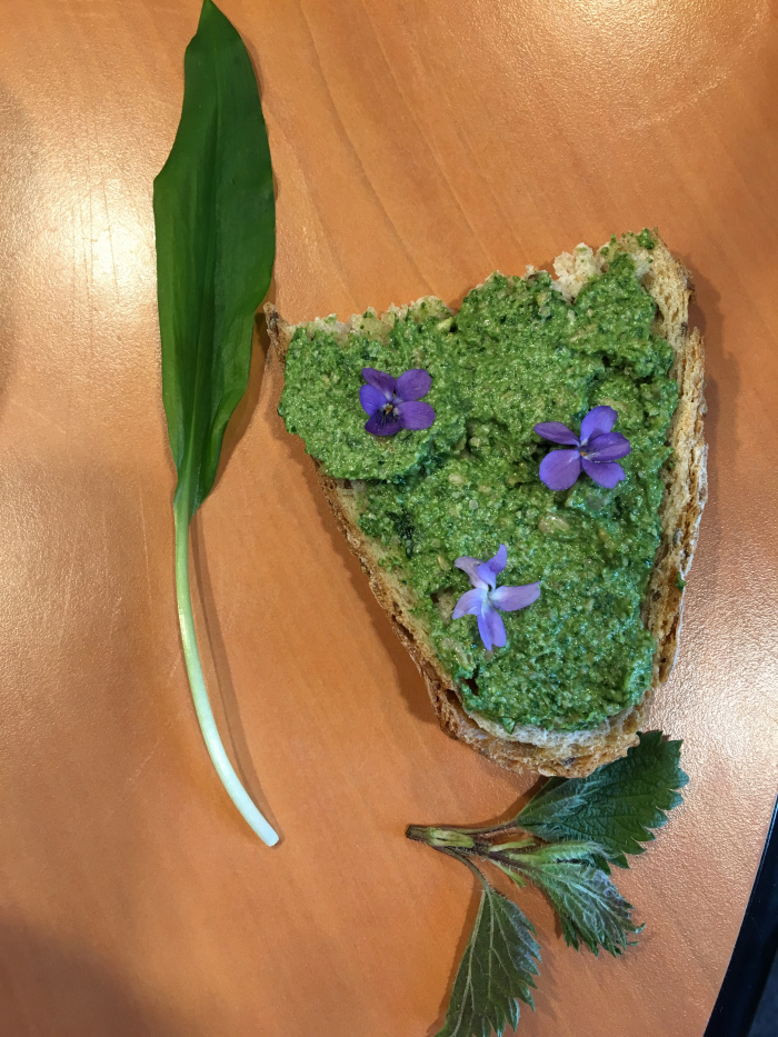 En avant-première une photo du pesto à l’ortie et l’ail des ours qu’on fera au cours de cuisine Bio Uriage-Grenoble