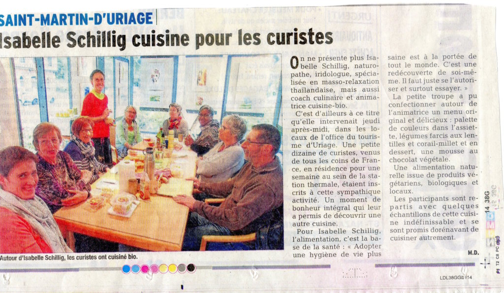 Les participants et participantes qui étaient là en cure à Uriage ou qui habitaient autour de Grenoble, sont repartis ravis des préparations et des conseils santé donnés. La mousse au chocolat sans lait et sans oeuf à fait des adeptes, mais les verrines aussi rassurez vous!