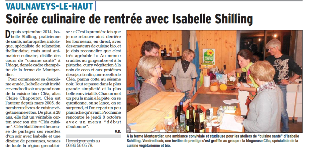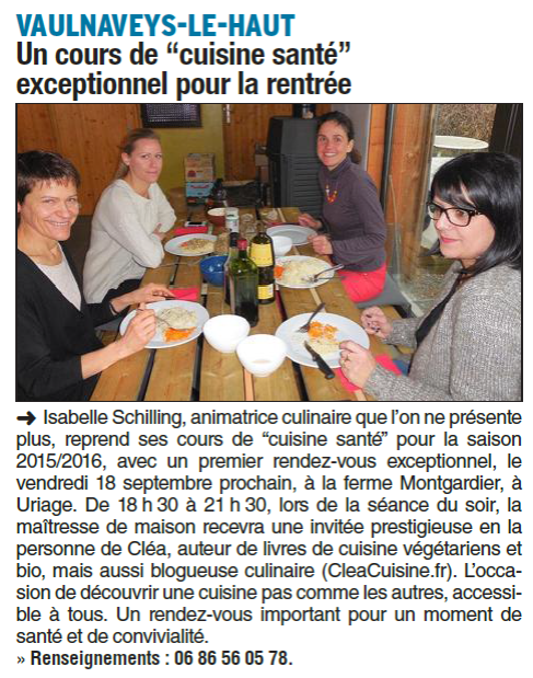 Le journal du Dauphiné met mes cours de cuisine SANTE à l'honneur