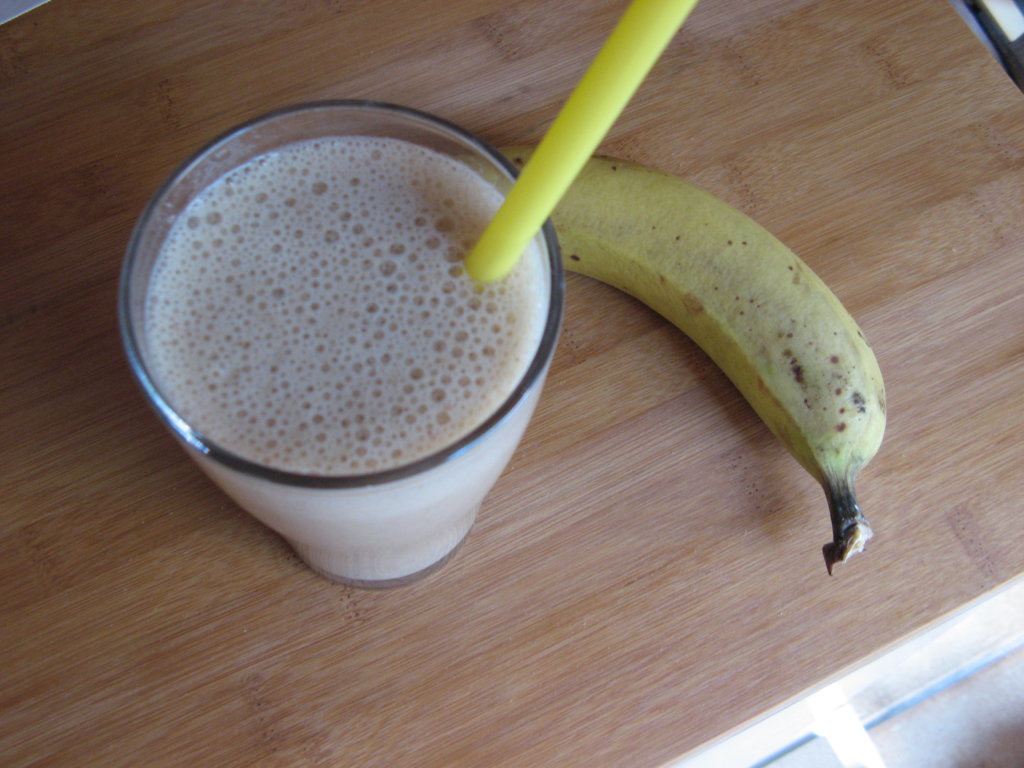 Savourer un smoothie de banane au lait végétal pour le goûter